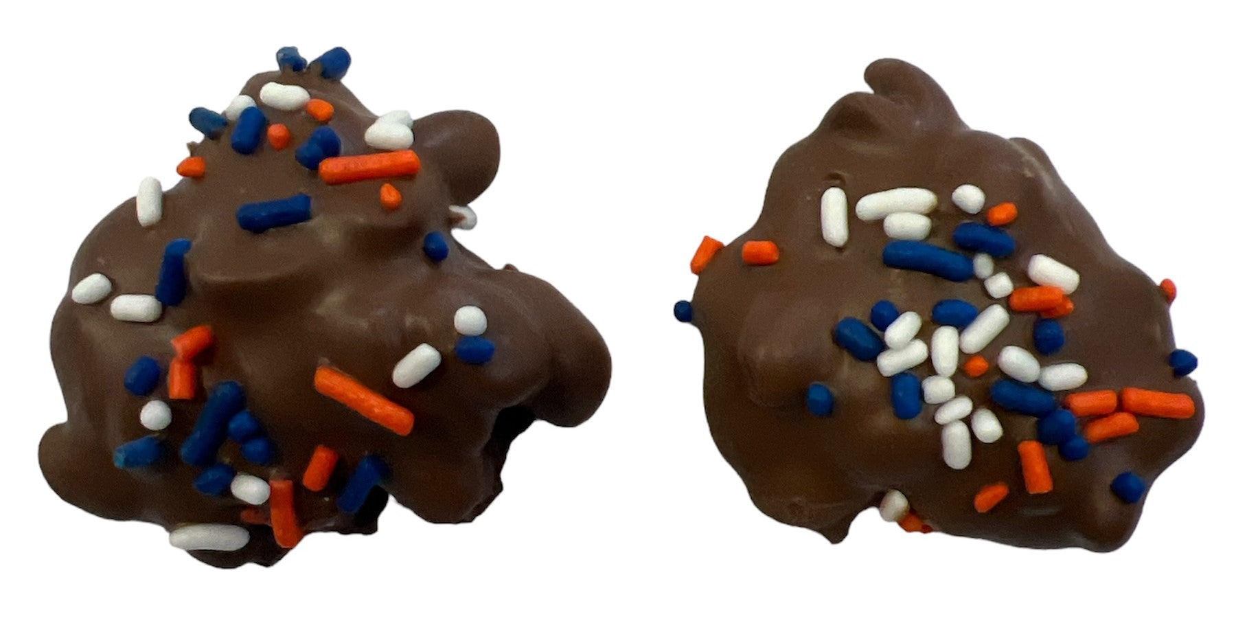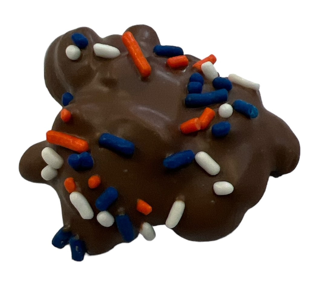 The Bronco Bites Bar is our sweet salute to Boise State University. We wrap buttery caramel and crunchy dry roasted peanuts in smooth, premium milk chocolate, then top it off with festive blue, orange, and white sprinkles. It’s a winning combination for every Bronco fan—past, present, and future. Go Broncos!