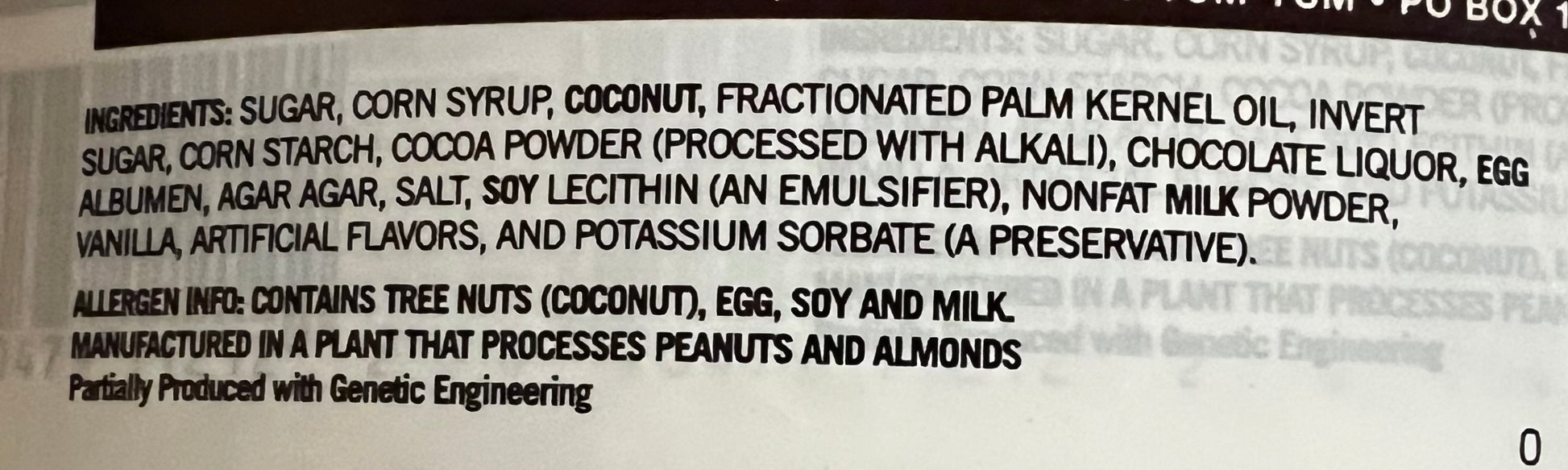 The popular Idaho Spud Bar is a wonderful combination of a light cocoa flavored, soft marshmallow center drenched with a dark chocolate coating and then sprinkled with coconut (Sorry, no potato!). It was originally marketed as a "Healthful" candy bar since it is made with agar agar instead of gelatin.